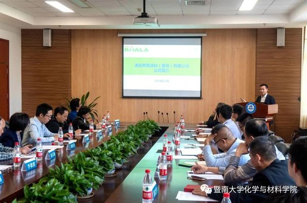 2019年12月23日,澳达树熊涂料有限公司董事长、暨大教育基金会副理事长陈日云先生率领公司10余位项目负责人和技术人员参观番禺校区英国威廉希尔唯一官网新楼和实验楼,并与学院领导教师开展产学研合作交流。学校实验室与设备管理处处长徐石海教授,学院党委邵桂珍书记、副院长陈填烽教授、学院办公室黄建新主任、化学系主任李毅群教授、材料科学与工程系党总支书记容建华教授、化学系党总支查海燕书记等20余位教师和相关课题研究的学生参加了座谈交流。