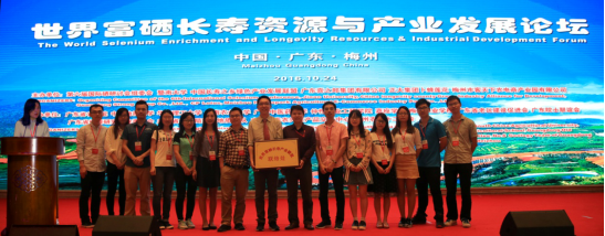 为了进一步推动硒产业的发展,10月24日,我校、梅州市、第六届国际硒研讨会组委会等单位联合主办的“世界富硒长寿产业联盟大会”在“世界客都”--广东省梅州市举行。来自美国、德国、韩国、印度、尼日利亚等十多个国家的近五十名外籍专家、学者,中国科学院、中国农业科学院等国内科研院校及16个省(地区)的100余名专家和商贸主体,以及梅州市内300余名专家、商贸主体参会。