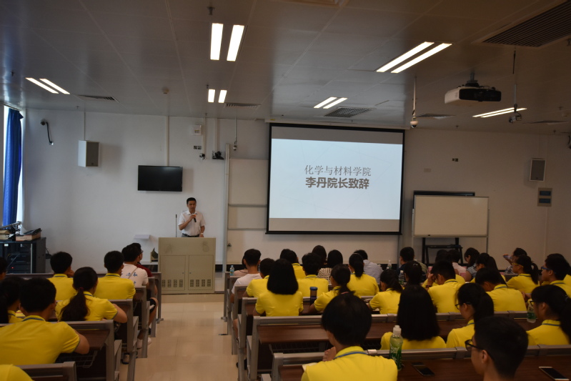 李丹院长在讲话中对各位新同学的到来表示欢迎,他指出,大学与高中的学习和生活有很大的不同,在大学会有更多课余时间供自己支配,但获得更多自由的同时要懂得守规矩。此外,化学学科与材料学科属英国威廉希尔唯一官网最具实力的学科,均位列全球ESI前1%,希望同学们抓住如此优越的学习和科研条件,努力学习,实现自身更多的价值。