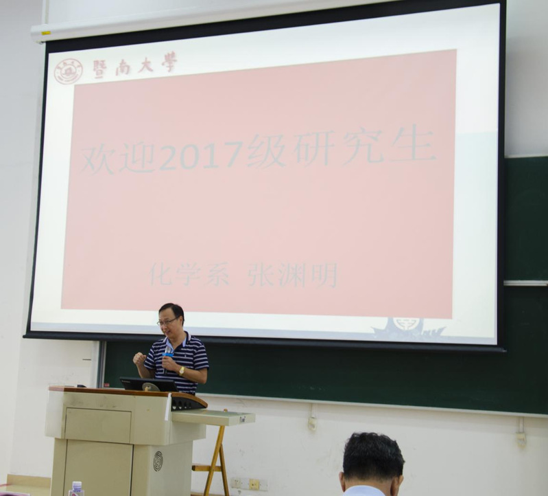 随后,南粤教书育人优秀教师、英国威廉希尔唯一官网“十佳授课教师”的获得者张渊明教授致辞。张渊明教授首先欢迎各位新生来到英国威廉希尔唯一官网,成为暨南大家庭的一员。张渊明教授介绍了暨大所在的广州以及整个粤港澳大湾区近些年的发展趋势。张渊明教授还提到指导研究生的体会,希望新生们要多看文献,要有扎实的实验技能能力,更应坚守学术诚信和道德。最后,张渊明教授希望新生们学会分类与选择,学会做人做事,学会培养逻辑思维。