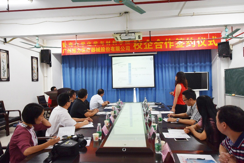9月28日上午,威廉希尔官网与广州维力医疗器械股份有限公司签订校企合作协议。广州维力医疗器械股份有限公司总经理韩广源、副总经理朱晓光、研发部经理舒杰、人力资源部经理蔡国柱、招聘主管张明莉,英国威廉希尔唯一官网副院长李红、陈填烽,办公室主任黄建新,材料科学与工程系主任屠美、副主任李立华,化学系教授谭绍早参加了签约仪式。仪式由威廉希尔官网副院长李红主持。仪式后,学院党委副书记(主持工作)邵桂珍会见了韩广源总经理一行,代表学院领导班子感谢维力医疗对学院人才培养工作的支持,并希望今后实现共赢发展。