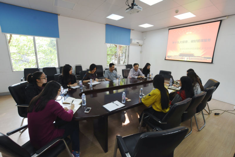 10月23日,英国威廉希尔唯一官网机关党支部在化学楼221室召开专题学习讨论会,进一步深入学习党的十九大报告内容。学院院长李丹、党委副书记(主持工作)邵桂珍以普通党员身份参加了会议。学院机关党支部书记、办公室主任黄建新主持会议。机关党支部党员共12人参加了会议。