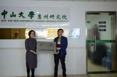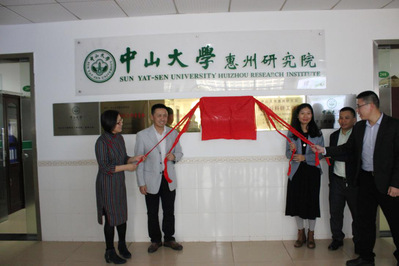 李丹院长、邵桂珍书记、吴海波院长助理等为威廉希尔官网与中大惠州研究院合办“校外实践基地”揭牌,并与合作企业代表合影留念。