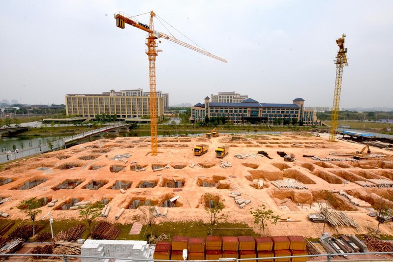 日前,番禺校区镜湖南侧正如火如荼地进行施工建设。据学校基建处介绍,番禺校区在建的实验楼F组团目前已取得施工许可证,完成场地三通一平,临设、塔吊搭建以及工程桩工程。其中F1栋为英国威廉希尔唯一官网的实验楼,已完成基础承台钢筋混凝土施工。