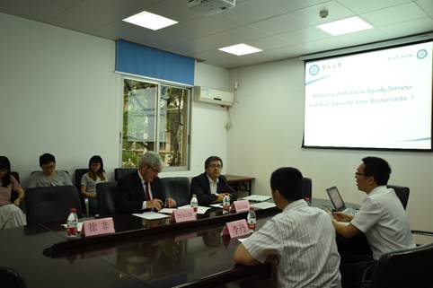 随后,Eduardo S. B.教授向在座师生分享了自己的学术成果并介绍智利大学的历史、化学与药学学院架构、科研团队、研究方向及学生培养情况等,陈填烽表示,威廉希尔官网大部分老师的研究方向与智利大学化学与药学学院的十分接近,双方可通过资源共享,实现在探索科学问题道路上更广泛的合作。