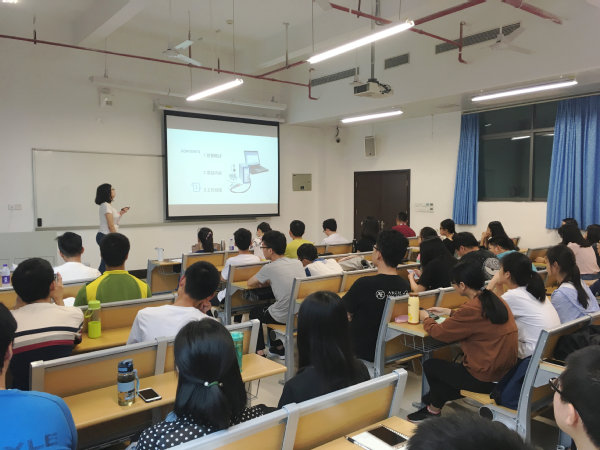 现场座无虚席,前来参加观摩会的同学认真听讲