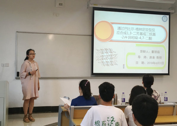 2016级化学工程与工艺专业董慧茹作为项目负责人对《制备异吲哚二酮及其氮取代衍生物的新反应研究》进行结题展示