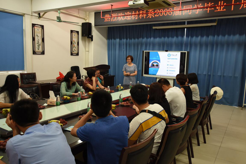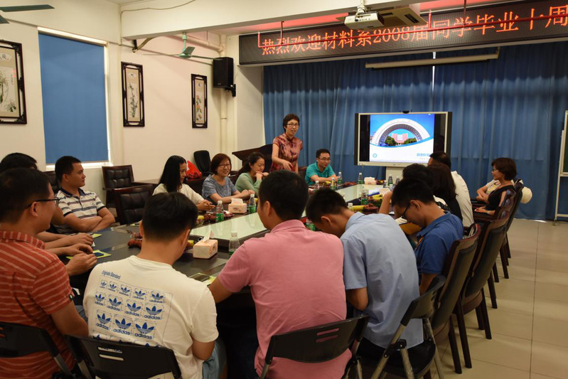 2018年6月30日上午,英国威廉希尔唯一官网2004级材料系校友毕业十周年聚会,在第二理工楼347会议室举行。14位校友专程回到母校,看望恩师,回忆校园青春时光,共叙别情。威廉希尔官网党委书记邵桂珍,副院长李红,材料科学与工程系党总支容建华、系主任屠美、副系主任李立华、讲师丁珊,学院辅导员孙嘉恒出席了活动,活动由材料系党总支书记容建华主持。