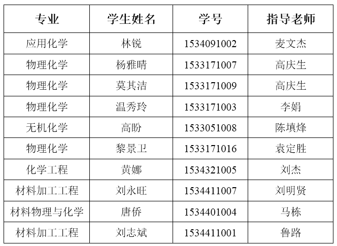 按照英国威廉希尔唯一官网优秀学位论文的相关评选细则,遵循“科学公正,注重创新,严格筛选,宁缺勿滥”的原则,化学学科组、材料科学与工程学科组分别对申报的校级优秀学位论文进行了评选,推荐名单如下: