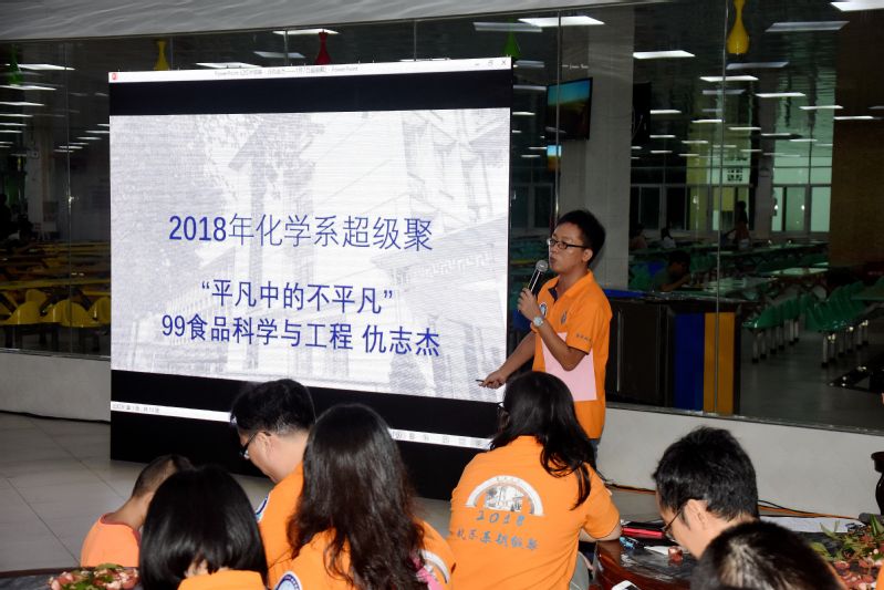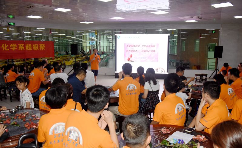 之后的活动晚宴在食堂3楼举行,98级校友吴岳恒担任本次晚宴的主持人。在宴会开始之前,本次活动的发起者之一、98级校友古健首先介绍了本次聚会的初衷。“梅西和C罗的世界杯结束了,同时也告诉我们:没有什么可以永葆年轻,如果有,就只有化学系!”古健校友一番妙语逗乐了到场的校友们,他表示,大家毕业之后在外拼搏、历经沧桑坎坷、饱受风雨的洗礼,是时候回归母校,回到过去的美好,享受片刻的宁静了。这一次的聚会,希望能够促进大家的交流,团结友爱,以母校、以校友为坚实的后盾,激励大家砥砺前行。