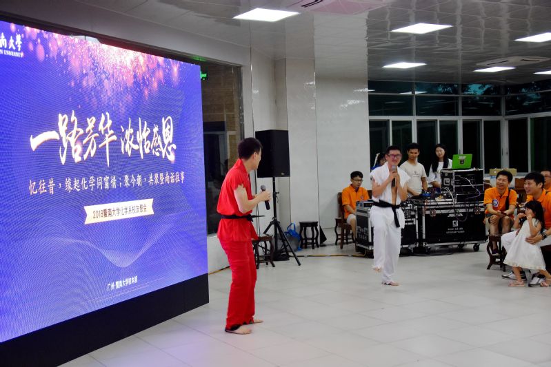 晚宴过程中,校友们还准备了有奖竞猜环节,通过一系列与化学相关的题目,勾起了大家对过去专业学习的回忆。98级校友陈义康,11级校友梁祺森、张家慧还为大家带来了有趣的节目表演,将活动的气氛推向高潮。
