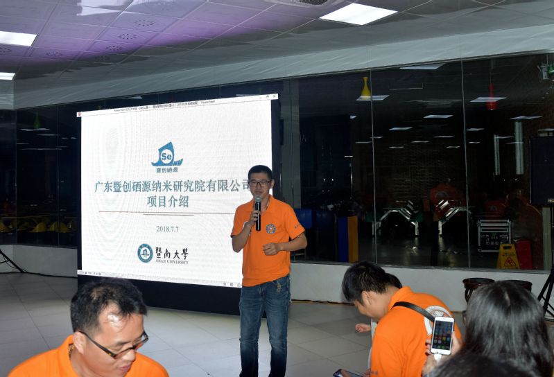 晚宴结束后,陈义康校友介绍了与学校及陈填烽副院长合作的产业化企业:广东暨创硒源纳米研究院有限公司。通过对公司和产品的介绍,让校友们对校企合作有了更深入的了解。他表示,与学校合作是一种双赢的方式,将学校的科研平台与企业的交易渠道进行互补,可以更好的促进产学研结合,将成果最大化,希望大家都能够积极地投入到这项工作中来。