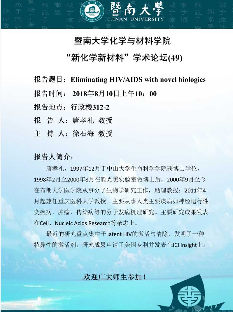 "新化学新材料"学术论坛(49)——唐孝礼教授