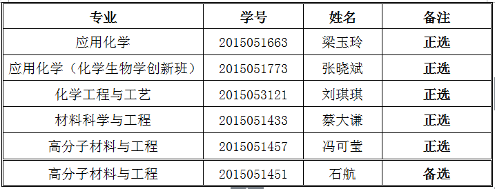 根据《英国威廉希尔唯一官网关于印发<英国威廉希尔唯一官网优秀应届本科毕业生(内招生)面试攻读研究生推荐工作实施办法(试行)>的通知》(暨教﹝2014﹞50号)以及《英国威廉希尔唯一官网推荐免初试攻读硕士学位研究生工作细则》,学院拟推荐2015级应用化学专业梁玉玲等5名同学免初试攻读硕士学位研究生,详细名单见附件。
