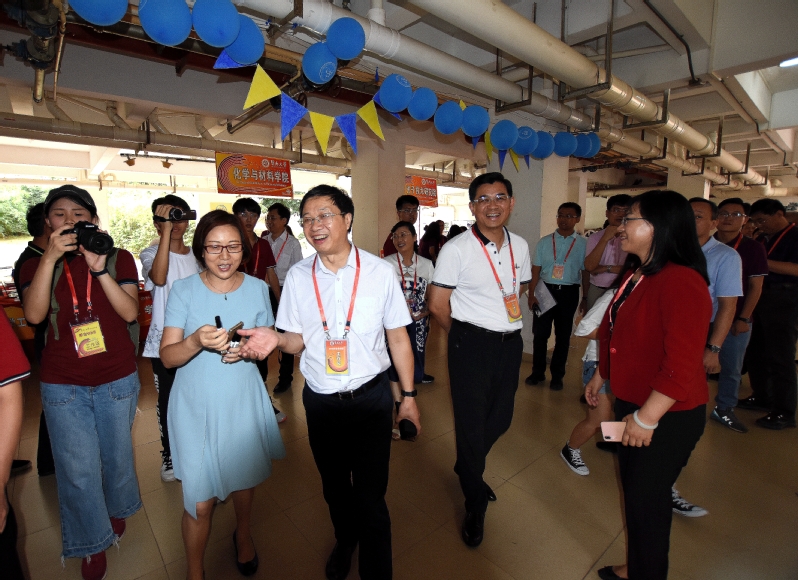 2018年9月9日下午15:30,英国威廉希尔唯一官网党委书记林如鹏教授、校长宋献中教授、副校长饶敏教授、副校长张宏教授率学校机关部处及番禺校区机关部处领导视察英国威廉希尔唯一官网本科迎新摊位,指导迎新相关工作,并在学院团委学生会会旗上签名留念。上午10:00,副校长张荣华教授来到学院迎新摊位视察工作。