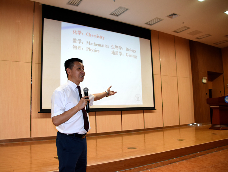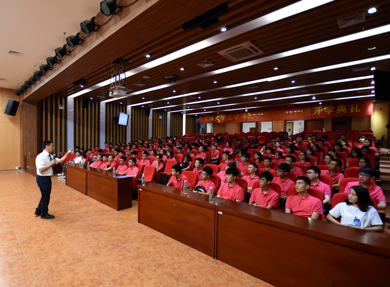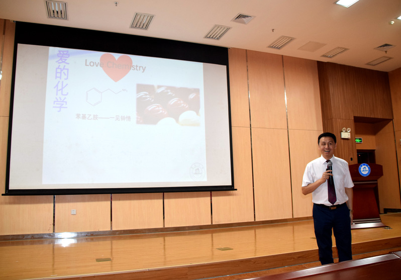 化学,是一门实用的学科,我们身边的万事万物都与化学有着千丝万缕的联系,“有广告说他们的产品不含化学物质,我很惊讶,你知道吗,就连你接触的空气、喝的水都属于化学物质……”说起化学,李丹院长总是充满激情,有着说不完的话,“化学是一门基础学科,学化学的人可以做很多事情,你们看,德国总理默克尔就是学化学的,咱们的习近平总书记本科学的也是化学专业”。李院长用幽默风趣的语言,给同学们介绍了身边的化学,以及化学在生活中的作用,浅显易懂而又深含哲理,整个课室惊叹声与掌声此起彼伏。