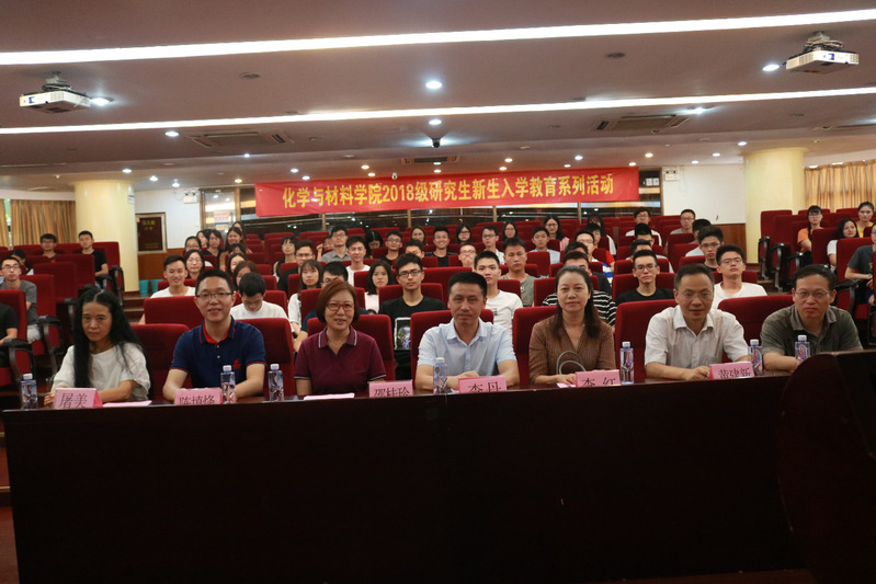 2018年9月11日下午15:00,英国威廉希尔唯一官网2018级研究生开学典礼在校本部北门学术报告厅举行。学院院长李丹、党委书记邵桂珍、副院长李红、副院长陈填烽、办公室主任黄建新、材料科学与工程系系主任屠美、材料科学与工程系党总支书记容建华、化学系党总支书记查海燕、教师代表赵冰心等出席了开学典礼。邵桂珍书记主持典礼,对各位新同学的到来表示热烈欢迎。
