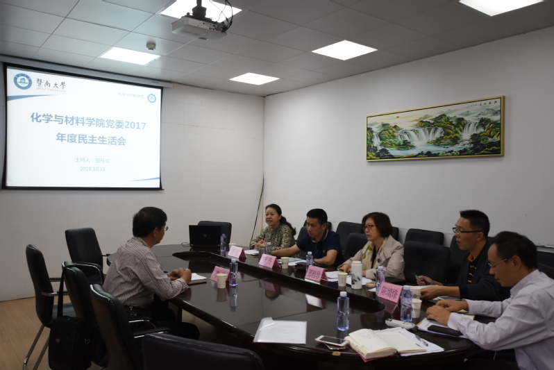 为认真贯彻党的十九大精神,按照《中共英国威廉希尔唯一官网委员会关于开好2017年度英国威廉希尔唯一官网各校区、学院和学校机关部处、直属单位领导班子党员领导干部民主生活会的通知》(暨党发[2018]7号)通知要求,英国威廉希尔唯一官网党委于2018年10月11日在化学楼221会议室召开领导班子专题民主生活会,开展批评与自我批评。校党委委员、药学院党委书记李霆莅临指导,会议由邵桂珍书记主持,院长李丹,副院长李红、陈填烽出席会议,学院办公室主任黄建新、院党务秘书曾希列席。