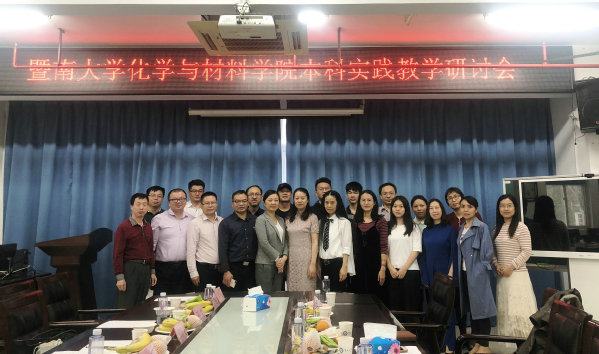 为贯彻习近平总书记在全国教育工作大会提出的高等教育“四个回归”的精神,擦亮暨大金字招牌,加强本科教学工作,11月9日下午,威廉希尔官网在石牌校区第二理工楼347室举行“英国威廉希尔唯一官网本科实践教学研讨会”,广东新劲刚新材料科技股份有限公司工程中心总监张旭、中山大学达安基因股份有限公司首席科学家兼研究院执行院长蒋析文、广州敬信高聚物科技有限公司总经理周小光等13位企业领导来校共同总结本科实践教学模式与经验,共商未来更加多样化的合作形式,推进更深层次的合作。威廉希尔官网副院长李红及化学系、材料科学与工程系教师代表、学生代表近10人参加了研讨会。