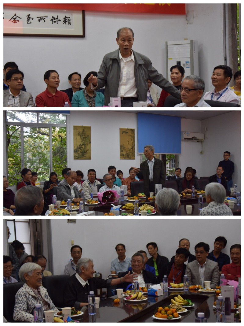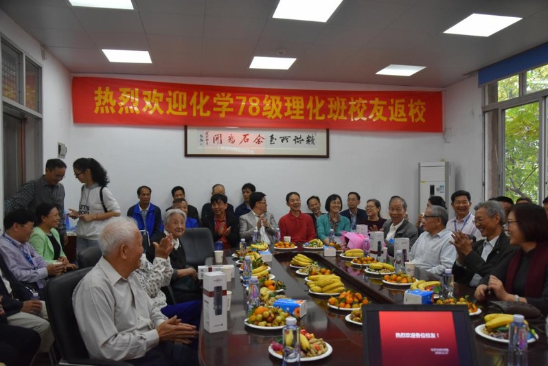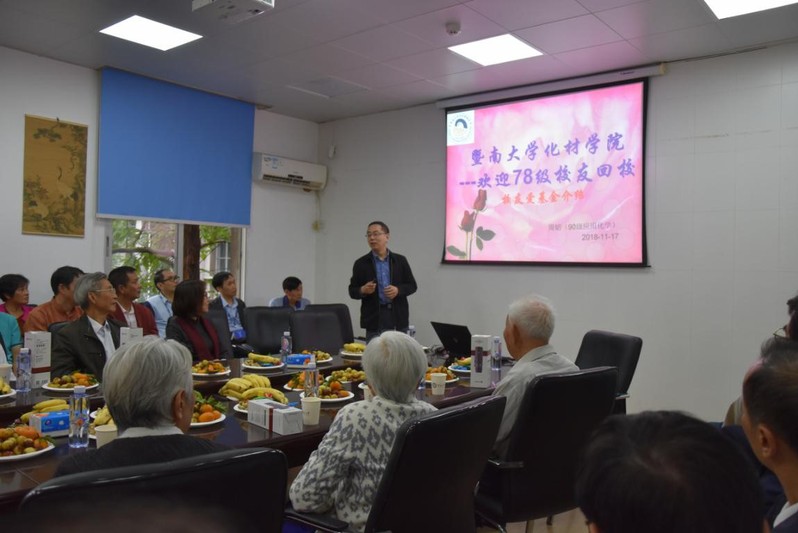 2018年11月17日下午,英国威廉希尔唯一官网78级理化班校友齐聚化学楼,为母校112周年生日送上祝福。五十余名校友不远万里汇聚一堂,怀着感激之情邀请了八位恩师,共同回忆暨大复办四十年来的点点滴滴,为学校的辉煌成就与学院的蓬勃发展送上了诚挚的祝贺。参加活动的退休教师有张仁凤、李钦瑞、郭书好、杨镇桓、方惠平、赖国绪、吴少莲、许世延。学院党委书记邵桂珍,办公室主任黄建新,化学系党总支书记查海燕,学院辅导员孙嘉恒出席了本次活动。