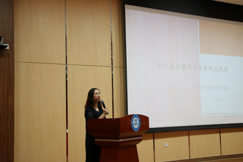 第二位为化材学子进行分享的是84级校友李欣女士。李欣师姐自毕业之后便进入到中国石化公司工作,先后担任过助理工程师、工程师、化验室副主任以及化工销售华南分公司的主管、高级主管,并在2008年被聘为高级经济师,积累了丰富的职场经验。不同于黄师兄的入职分享,李师姐从毕业后面试者的角度切入,为同学们传授了许多面试者必须具备的能力与技巧,结合案例,帮助大家更好地去准备将来毕业后面试的诸多细节。李欣师姐同样也表达了对暨大,对化材院的感激,同时鼓舞同学们要奋发学习,注重培养自己的能力,才能在今后的职场生涯焕发光彩。最后,李师姐以一句箴言来结束自己的分享——“珍惜昭华,奋发有为”!