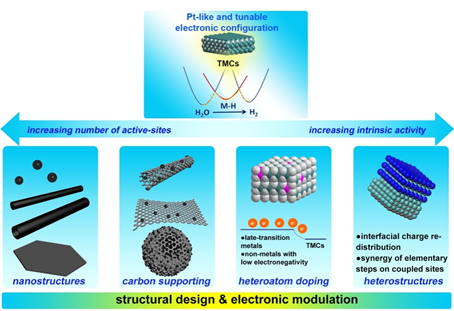 图1.过渡金属碳化物电催化剂的主要设计策略。