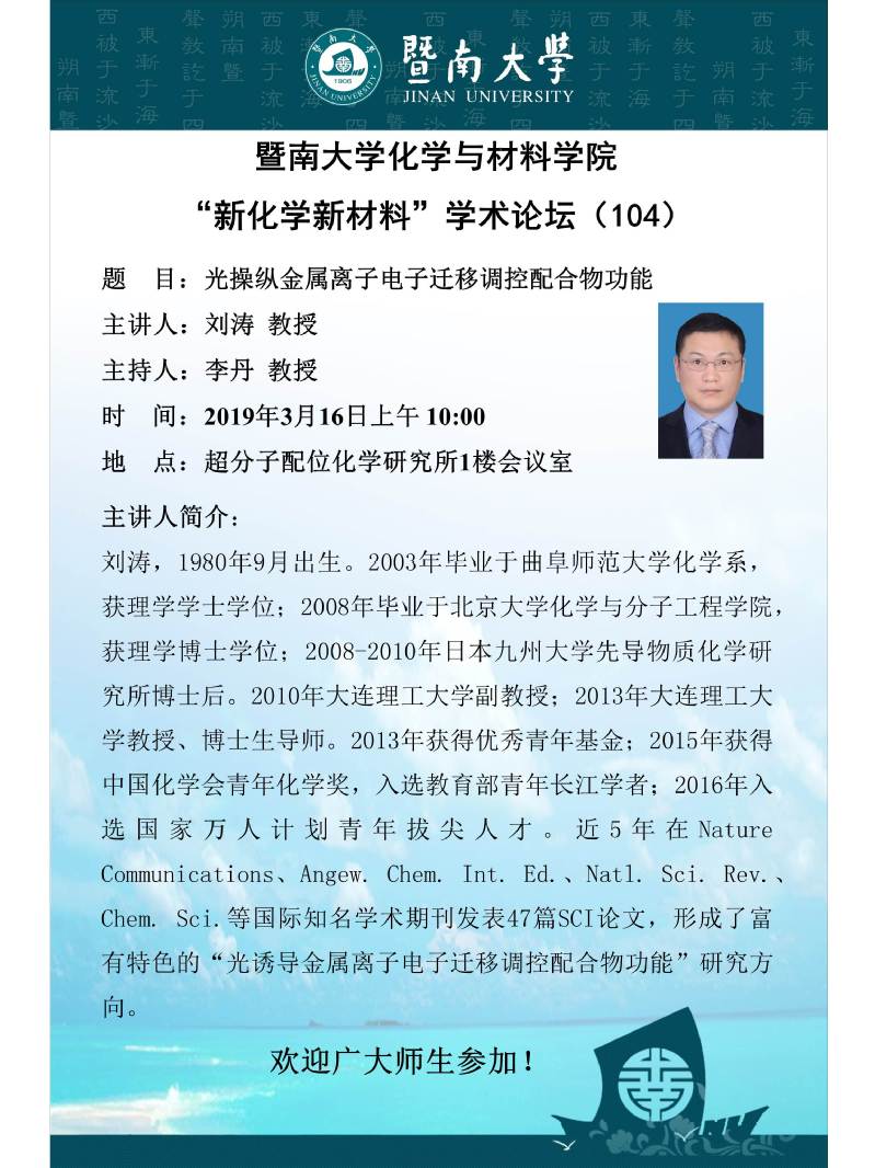 英国威廉希尔唯一官网“新化学新材料”学术论坛(104)