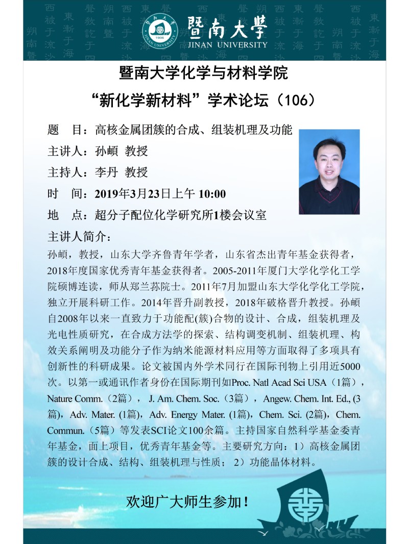 英国威廉希尔唯一官网“新化学新材料”学术论坛(106)