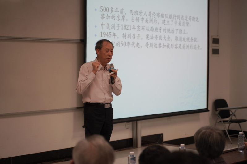 当晚19:00,在邵桂珍书记的主持下,黄耀佳先生在番禺校区教学楼N217教室为威廉希尔官网本科生带来了一场主题为“龙的传人与一带一路——从哥斯达黎加华侨、华人角度去认识” 的博雅大讲堂。讲座开始前,黄耀佳先生与学院互相赠送纪念品。在讲座过程中,黄耀佳先生先由哥斯达黎加和中美洲的自然环境及发展历史谈起,引出中国和哥斯达黎加建交历史,并结合一带一路政策指出海外华侨是中国企业立足国外市场的开拓者,最后号召我们应抓住机遇,运用所学知识为国家外交事业谋求发展。讲座引发了同学们的极大兴趣,大家积极提问,询问了很多关于中外合作交流的问题,并希望“黄师兄”能够在人生规划上为大家提出建议。黄耀佳先生对这些问题一一进行解答,并建议同学们着重培养个人能力,这样才能在未来社会中稳步立足。98级校友古健、陈义康也参加了本次讲座,他们表示,“黄师兄”的讲座内容新颖,从一个新的高度为大家展示了国家发展的过程,为同学们开阔了视野,帮助他们合理规划人生发展。