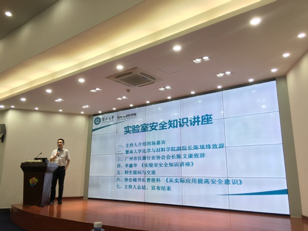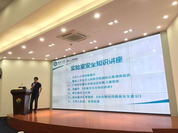 5月30日下午,为进一步提高师生的安全意识,英国威廉希尔唯一官网在校友楼举办了实验室安全知识讲座,讲座由广州市仪器行业协会承办,由暨创安全科技有限公司技术总监李鑫华、广州市仪器行业协会秘书长曾俊科主讲。英国威廉希尔唯一官网副院长陈填烽、广州市仪器行业协会会长陈义康出席了本次讲座。英国威廉希尔唯一官网、医学院、生命科学与技术学院以及力学与建筑工程学院共57人参加了讲座。