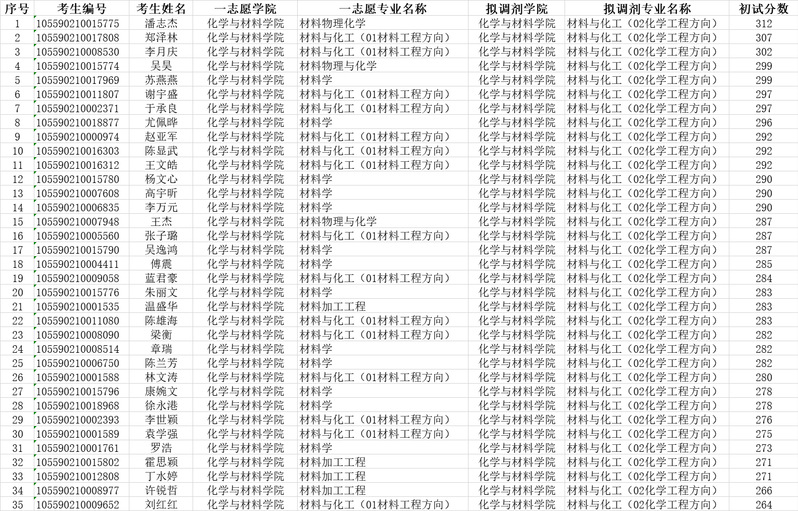 依据2020年英国威廉希尔唯一官网硕士研究生招生计划和复试比例要求,英国威廉希尔唯一官网的材料与化工专业(02化学工程方向)复试缺额35人。因此,按《2020年英国威廉希尔唯一官网关于材料与化工专业硕士接收调剂生的公告》组织调剂工作。