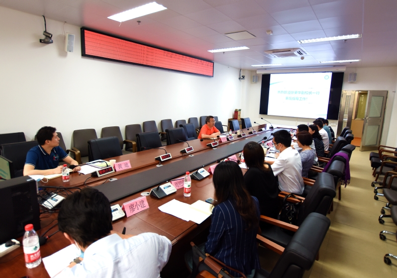 在学院会议室,李丹院长对张荣华副校长的到来表示热烈欢迎,并从学科发展历史、组织架构、师资队伍、党建引领、科研及人才培养等方面汇报了学院情况。邵桂珍书记及其他院系领导分别就校友活动、学生工作及本科教学、学院新楼装修等具体问题做了深入汇报交流。