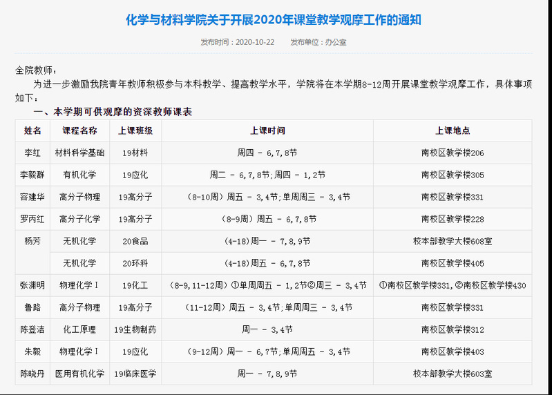 (英国威廉希尔唯一官网2020年课堂教学观摩资深教师课表)