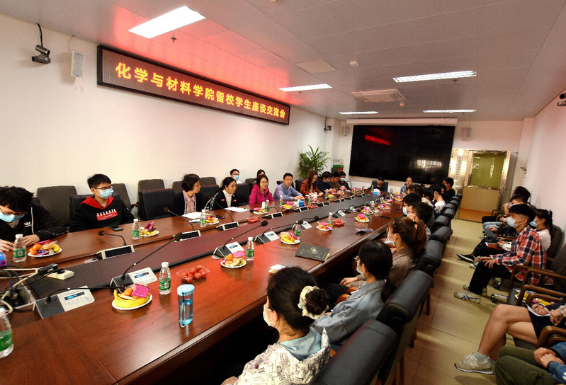 留校学生代表对学院领导和老师的关心慰问表示感谢,并表示会严格遵守学校的各项规定,认真学习,积极锻炼,在力所能及的情况下积极服务同学,与学院共同努力,营造一个更加温暖的化材院大家庭。