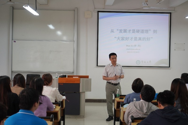 2021年3月26日上午,英国威廉希尔唯一官网院长李丹在番禺校区D组团319课室为行政人员和部分学生干部作了“从发展才是硬道理到大家好才是真的好”的专题培训讲座。他结合自身求学、教学、科研、管理等方面的丰富阅历和30多年高校工作实际,从团队精神、项目管理、沟通技巧、时间管理、管理人生等五方面详细阐述了行政工作的理念、技巧,及管理个人时间、职业规划等方面的心得体会。培训会由党委书记邵桂珍主持。
