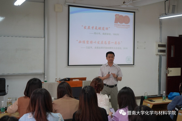 李丹以《从“发展才是硬道理”到“大家好才是真的好”》为题,从邓小平南方谈话、习近平总书记在庆祝改革开放40周年大会讲话中有关发展的论述出发,以党史为线索,结合自身学习、工作、生活的经历和思考,旁征博引、深入浅出,讲述了自己对于“发展”的理解感悟。他不仅从理论层面讲述了“发展”的深刻内涵和变迁过程,更从团队精神、项目管理、沟通技巧、时间管理、管理人生等视角,深刻阐释了把握新阶段、贯彻新理念、构建新格局的核心要义和建设社会主义现代化强国新征程上化学与材料学科师生的使命担当。