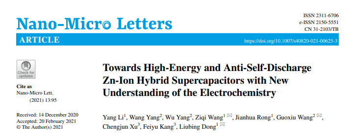 近日,英国威廉希尔唯一官网董留兵教授课题组在Nano-Micro Letters(IF:12.264)上发表了题为“Towards High-Energy and Anti-Self-Discharge Zn-ion Hybrid Supercapacitors with New Understanding of The Electrochemistry”的原创性研究论文,英国威廉希尔唯一官网王子奇教授和澳大利亚悉尼科技大学汪国秀教授为本文的共同通讯作者。