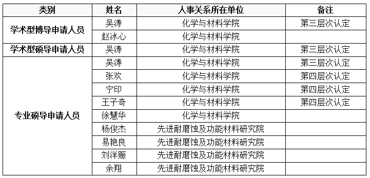 按照研究生院《英国威廉希尔唯一官网关于开展2021年新增研究生指导教师遴选工作的通知》,经本人申请、人事关系所在学院初审、人事处/科技处复核、学位办/专业学位办复核,现作为化学学科组、材料与化工专业学位授权点所在学院,对资质合格的申请人员名单予以公示: