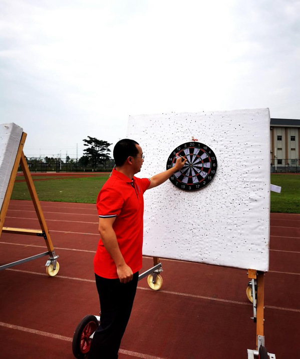 此外,为增添活动的节庆氛围,调动运动热情,正式开跑前,番禺校区工会安排了教职工趣味飞镖预热项目,威廉希尔官网陈兴宽、欧刚、赵剑豪三位老师代表学院参赛,成绩记入本次活动总分。