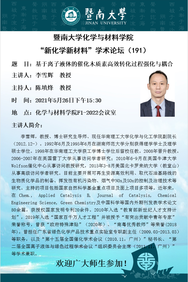 题目:基于离子液体的催化木质素高效转化过程强化与耦合