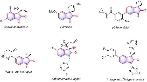 图2. 含3, 3’-二取代吲哚酮骨架的生物活性分子