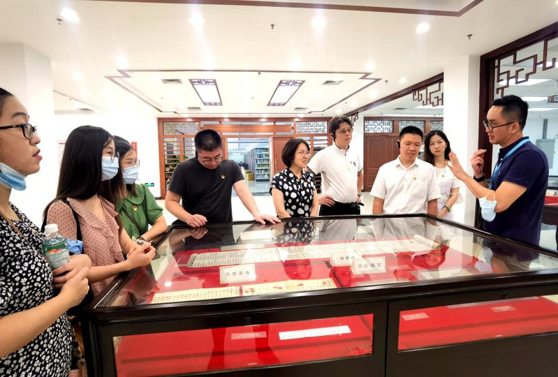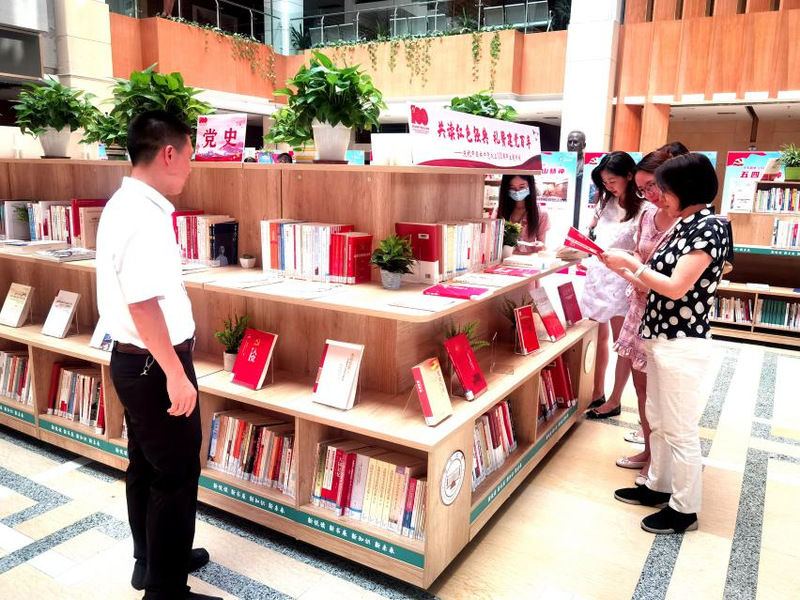在邵桂珍的带领下,支部首先参观了图书馆二楼“中国共产党人的红色精神谱系”主题展览,展览通过32块展板,图文并茂地展示了从1921年新民主主义革命时期到党的十八大以来党团结带领全国各族人民战胜一切艰难困苦、从胜利走向胜利的奋斗历程中铸造的红船精神、西柏坡精神、抗美援朝精神、抗疫精神、脱贫攻坚精神等中国共产党人的宝贵精神内涵。加上对党史学习教育书籍的阅读,各位党员深刻领略党的百年辉煌历史,感悟党的百年奋斗精神。