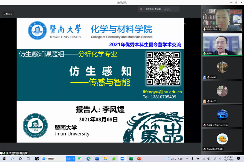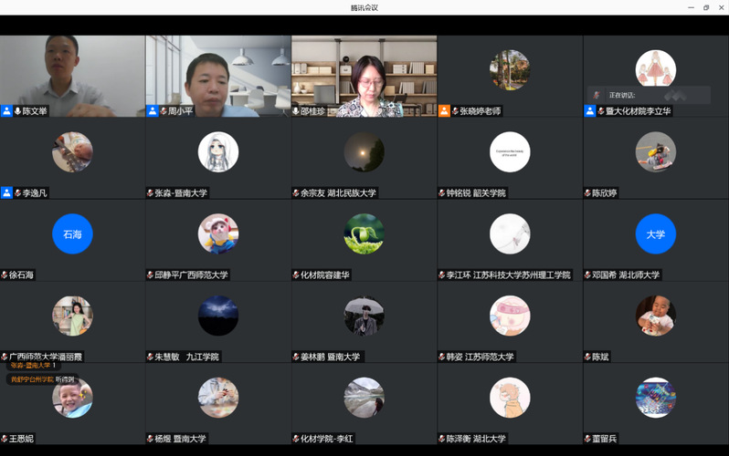8月8日下午,来自超配所配位化学研究所、化学系和材料科学与工程系共8个科研团队的代表:宁国宏教授、徐石海教授、朱毅副教授、刘春元教授、李风煜教授、李立华教授、刘明贤教授及董留兵教授分别进行了介绍分享。各位老师毫无保留地对学习、科研、生活和工作进行了讲解,并积极回答了营员关注的一系列问题,增加了营员对研究团队的研究方向、师资水平、实验平台等全方位多角度的认识。