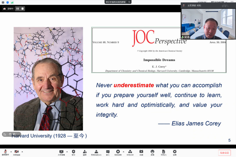 李丹院长从学院历史沿革、学院及学科发展、研究生招生和研究生培养四个方面,向营员们做了细致详尽的介绍。他结合威廉希尔官网在世界顶尖期刊《Nature》上的最新研究成果,启发同学们科学研究要追求卓越、永争第一。新时代为化学与材料的发展提出了更高的需求、提供了更大的空间,也为同学们提供了更好的舞台,希望来自五湖四海的同学们围绕祖国的需要,设定好人生的目标。非常欢迎海内外满怀科学梦想、渴望创新创造、向往美好生活的学子报考英国威廉希尔唯一官网研究生。