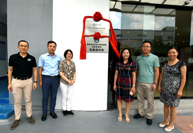 会议结束后,学院党委邵桂珍书记、校友联谊会会长龙卓飞、化学系党总支查海燕书记、古健秘书长及广州茗莎生物科技有限公司代表陈德娜、吴汉华一同,为英国威廉希尔唯一官网校友联谊会化妆品分会和校友企业教育实践基地揭牌,并合影留念。