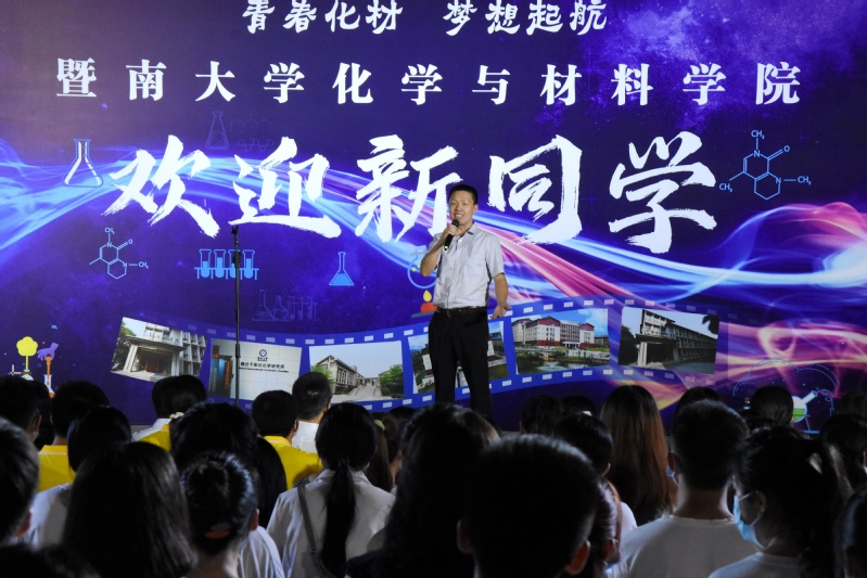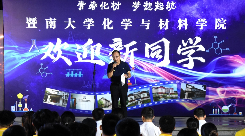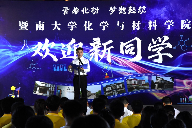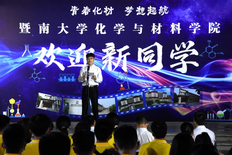 新生代表、高分子化学与物理专业博士研究生刘坤随后发言,“一切的坚持和付出,成就了来自暨南园的我们,来到暨南园便意味着新的开始”,他表示,我们是与时代同向同行的一代青年人,我们生逢其时、重任在肩,面临建功立业的难得际遇,我们更要志存高远,脚踏实地,把个人追求融入到祖国的大我之中。再过3天就是教师节,刘坤代表新生提前祝老师们节日快乐,现场响起热烈的掌声。