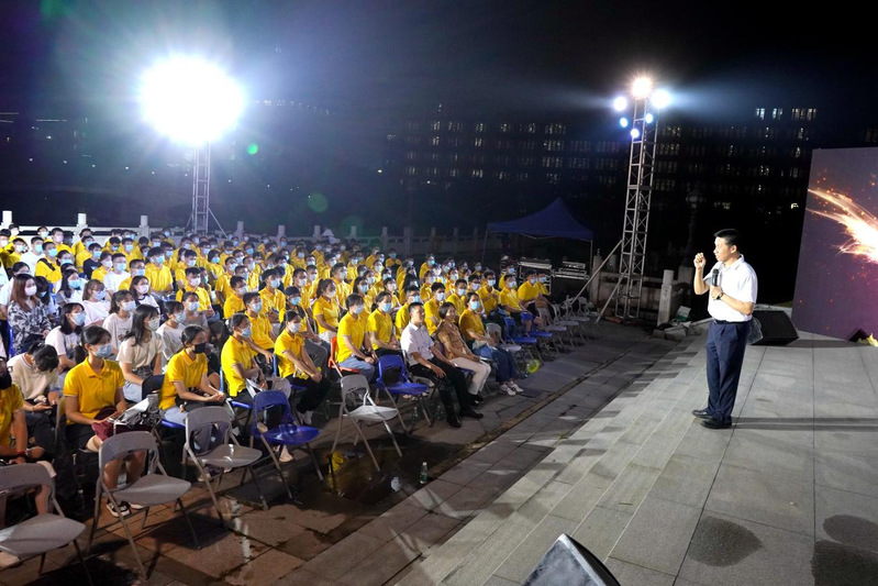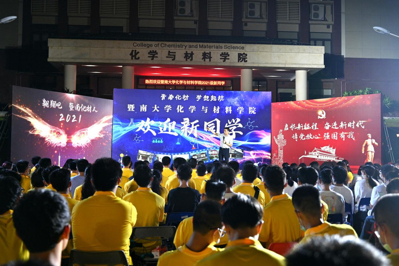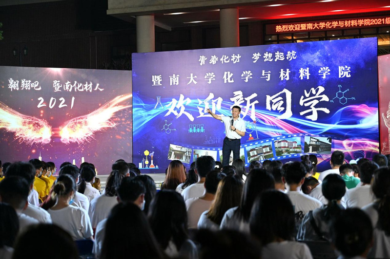 2021年9月7日晚,化学与材料学院310名本科生、研究生新同学在番禺校区化材楼前刚刚参加完令人难忘的2021级新生开学典礼,李丹院长紧接着带来了别开生面的开学第一课。
