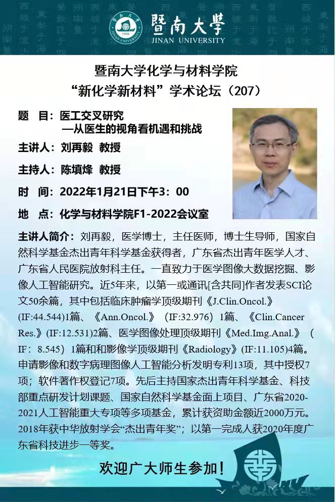 题 目:医工交叉研究—从医生的视角看机遇和挑战