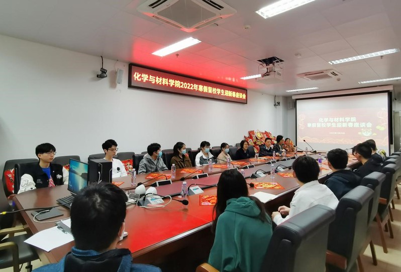 在化材楼2022室举办的留校本科学生座谈会上,同学们依次发言,介绍了近期在校学习生活情况、过年安排。2018级材料科学与工程专业、来自台湾的叶镇豪同学说,因为疫情原因自己已经有两年没有回家了,很想念家人,不过,在学院与老师们、同学们一起过年也特别有意思。2020级应用化学专业的李梓毅家在河南,受疫情原因无法回家,将会充分利用寒假时间推进创新大赛项目的进度。2020年应用化学专业的邓汉辉同学提到自己报名参加了学院组织的“21天学霸养成日记”线上学习打卡活动,希望通过活动培养自己的自学能力、提高自律性,也让假期变得更加充实而又有意义。2018级应用化学专业的黄泳娴同学则在座谈会上分享了自己刚刚结束的生产实习经历,提出希望能够通过丰富的实习内容多多积攒经验,锻炼自己,提高专业能力。与会老师就同学们关心的问题一一回应,对实验室使用、实习安排等问题进行了详细说明,并就一些问题给出了温馨的提示。
