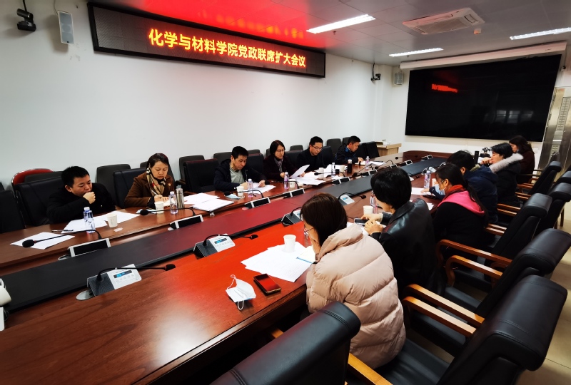 2月24日上午11点,学院在番禺校区学院楼2022会议室召开新学期党政联席扩大会议,开展理论学习,研究部署本学期重点工作。院长李丹、党委书记邵桂珍、副院长李红,陈填烽、党委副书记兼办公室主任陈文举、副院长周小平,化学系系主任高庆生、党总支书记查海燕,材料科学与工程系系主任李立华,党总支书记容建华、实验中心常务副主任周艳晖参加会议。会议由学院院长李丹主持。